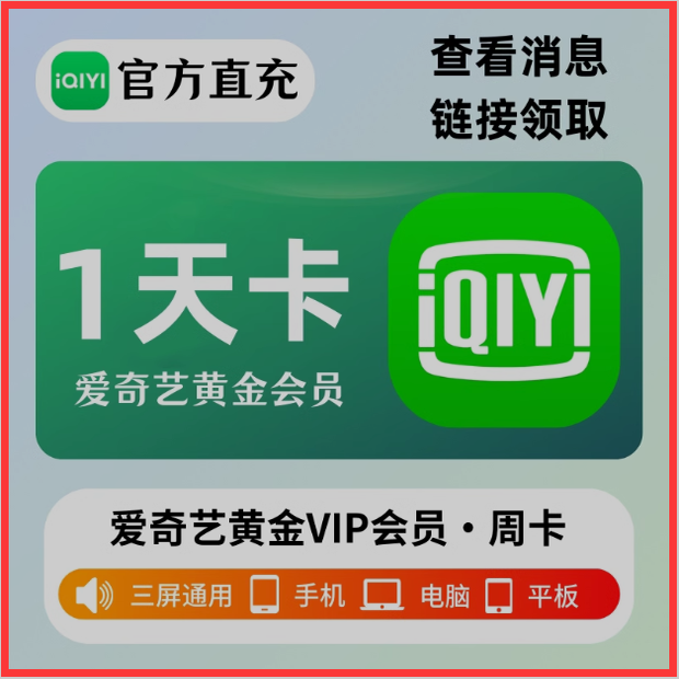 爱奇艺黄金会员vip1个月30天一个月1天3天5天黄金会员非电视端
