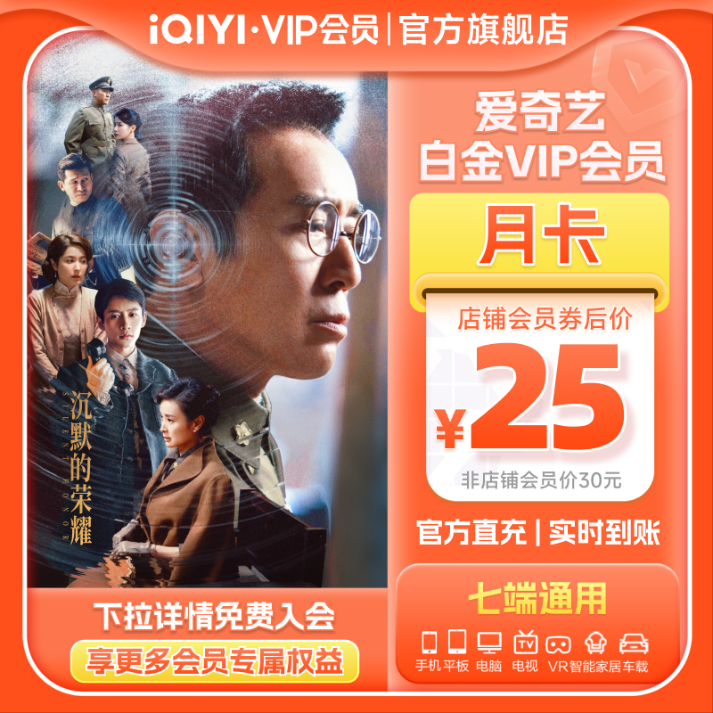 爱奇艺白金VIP会员月卡1个月 支持银河奇异果视频会员 沉默的荣耀