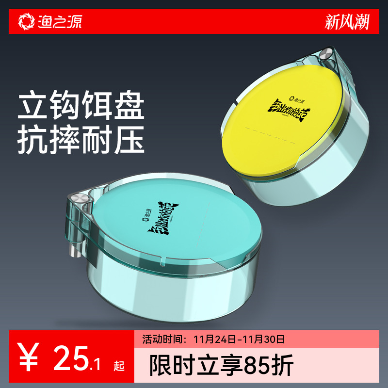 佳钓尼新款拉饵盘全磁通用一线强磁立钩钓鱼饵料盒散炮钓箱开饵盆
