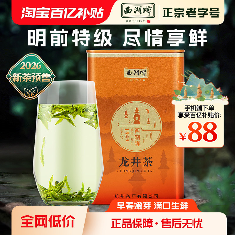 【百亿补贴】2026新茶预售西湖牌明前特级精选龙井茶100g罐装春茶