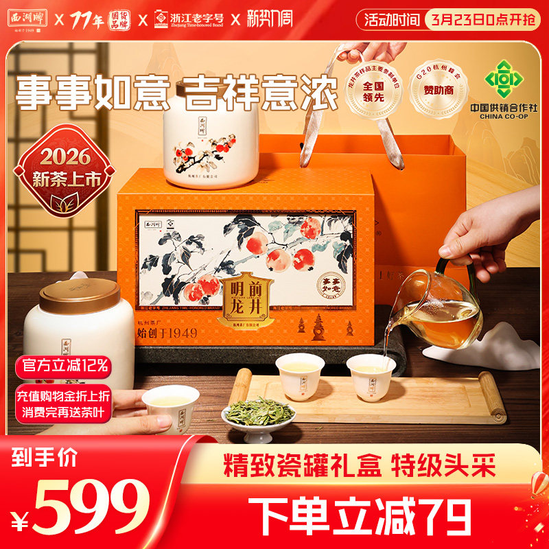 2026新茶上市西湖牌明前特级壹号头采龙井茶柿柿如意礼盒装送长辈