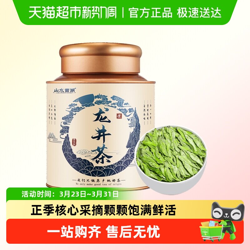 山水西湖龙井茶叶地标绿茶2026新茶春茶特级明前豆香嫩芽罐装送礼