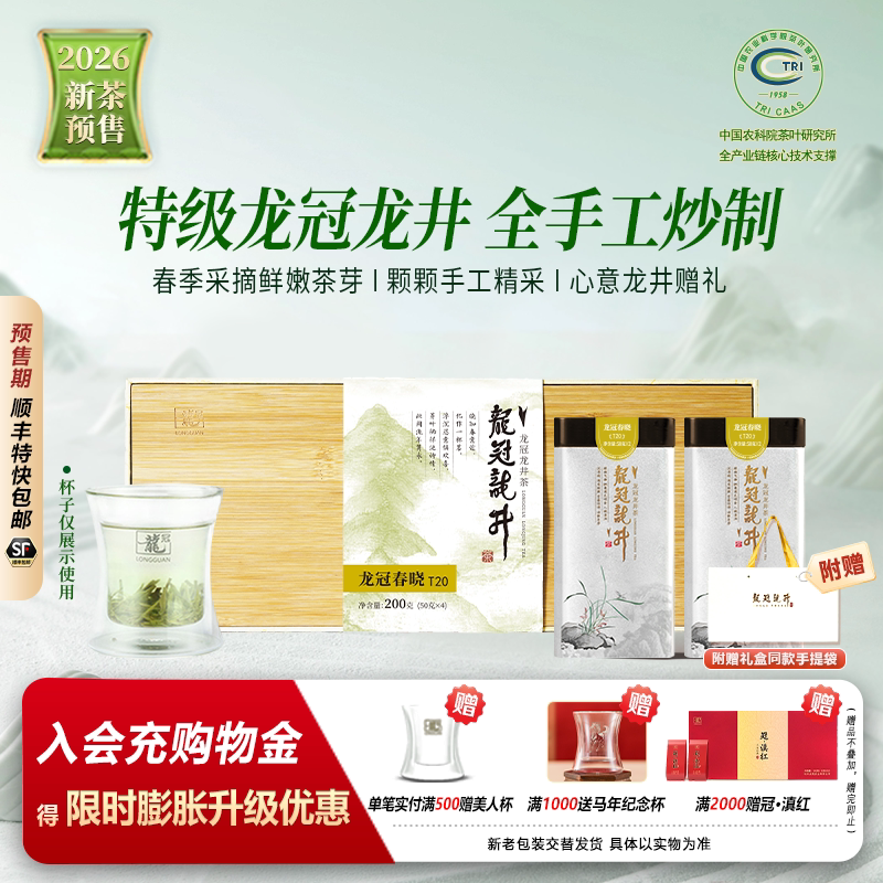 2026新茶预售 龙冠龙井茶明前特级T20双罐茶礼盒装200g绿茶正宗