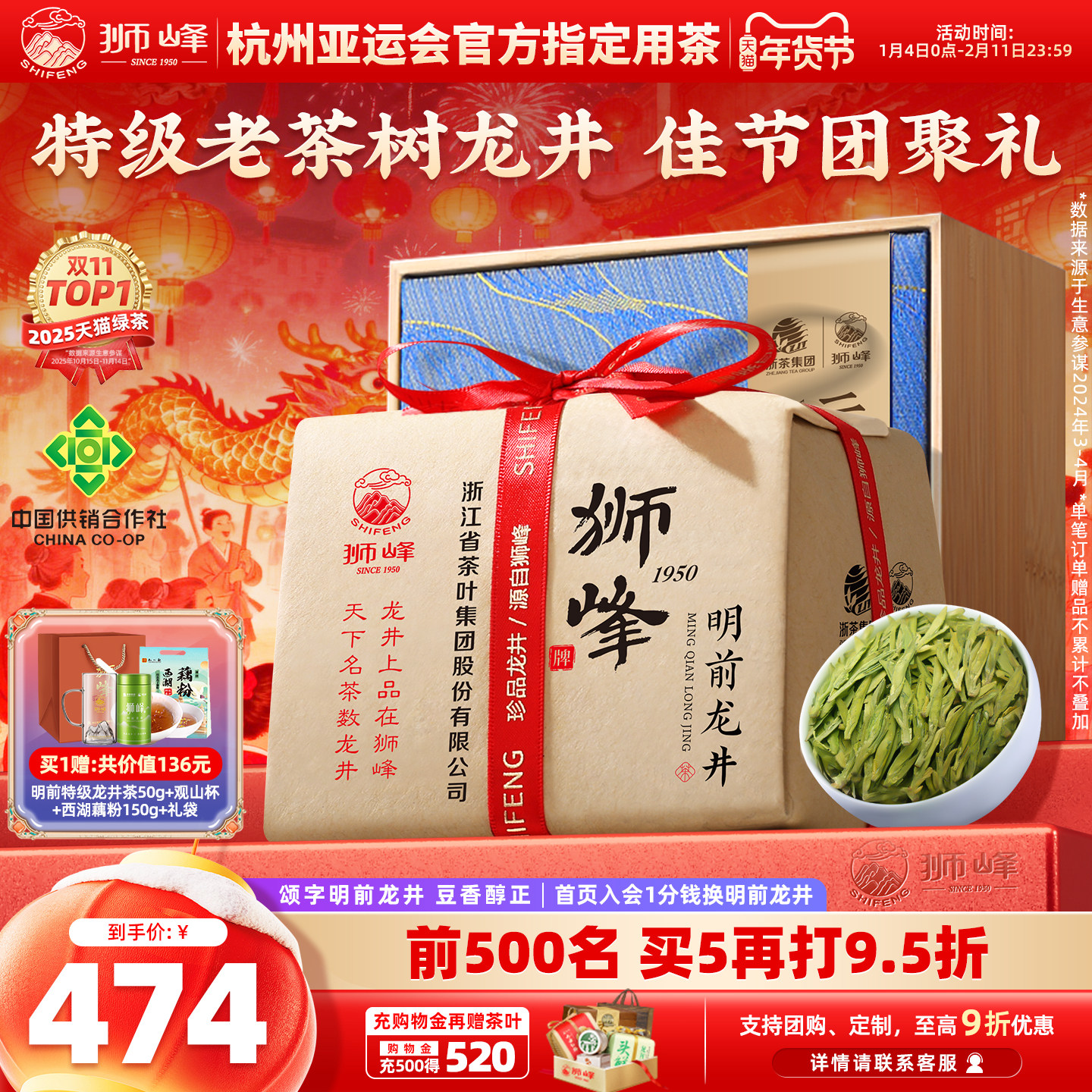 2025新茶狮峰牌老茶树明前龙井特级春绿茶叶官方旗舰店送西湖藕粉
