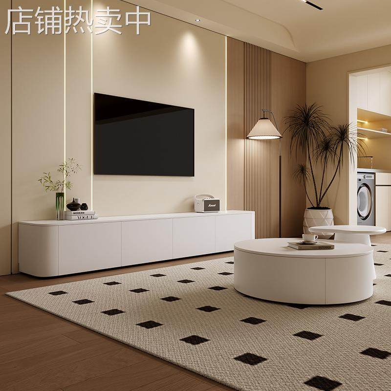 奶油风落地电视柜现代简约小户型实木客厅2025新款电视机柜茶几