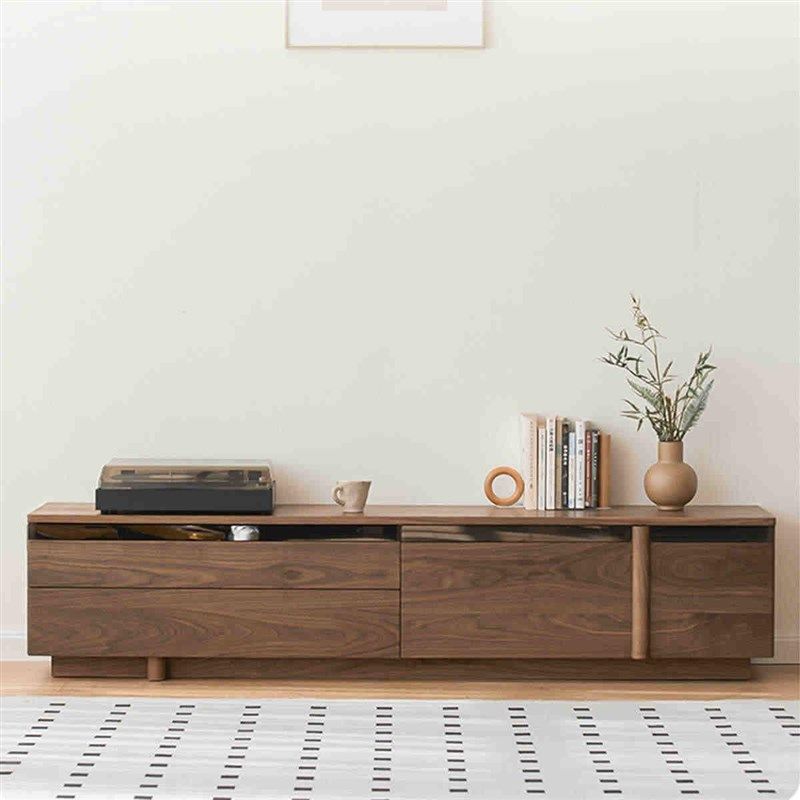 北欧现代实木电视柜黑胡桃木简约家用客厅日式落地柜储物柜视听柜