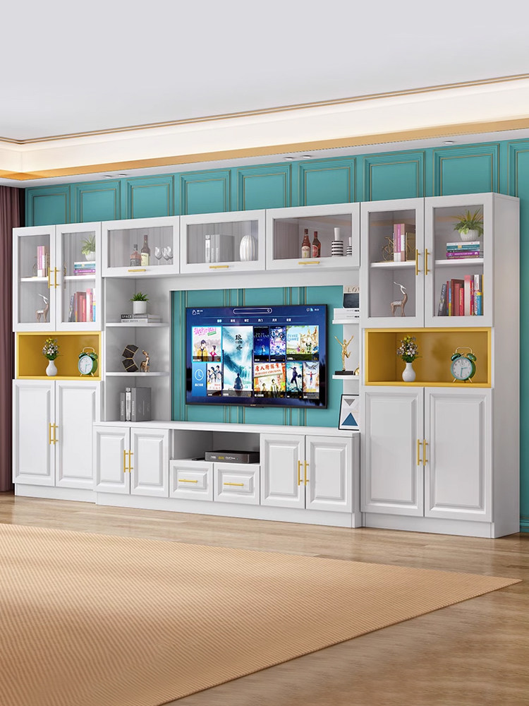 法式现代实木电视柜组合民宿酒店落地2米装饰柜客厅休闲书柜定制