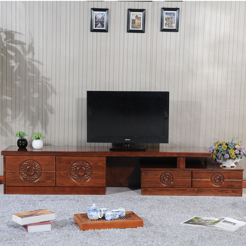 中式现代实木电视柜客厅家用全实木经济型小户型卧室伸缩储物地柜