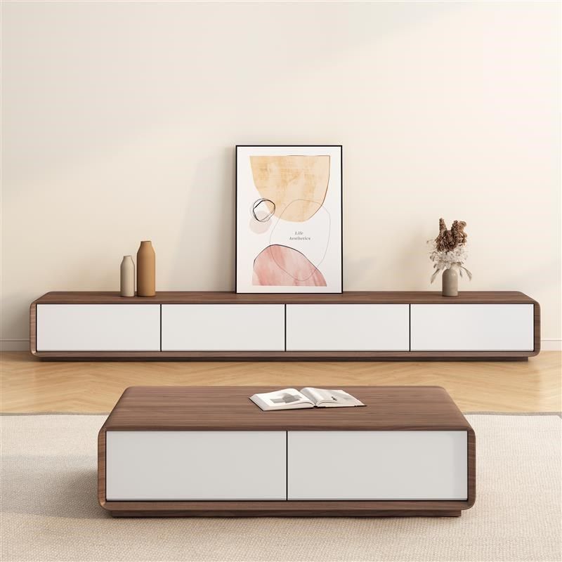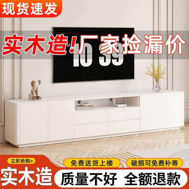 极简风落地电视柜茶几组合简约现代实木电视柜白色落地收纳储物柜