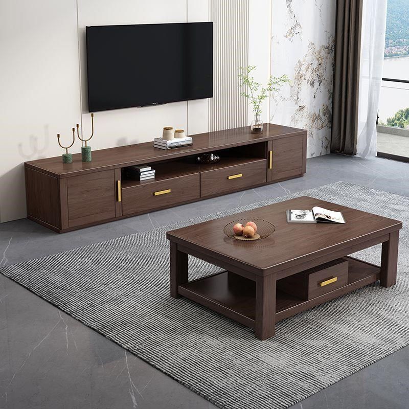 实木电视柜茶几组合小户型现代家用储物柜子地柜轻奢客厅电视机柜