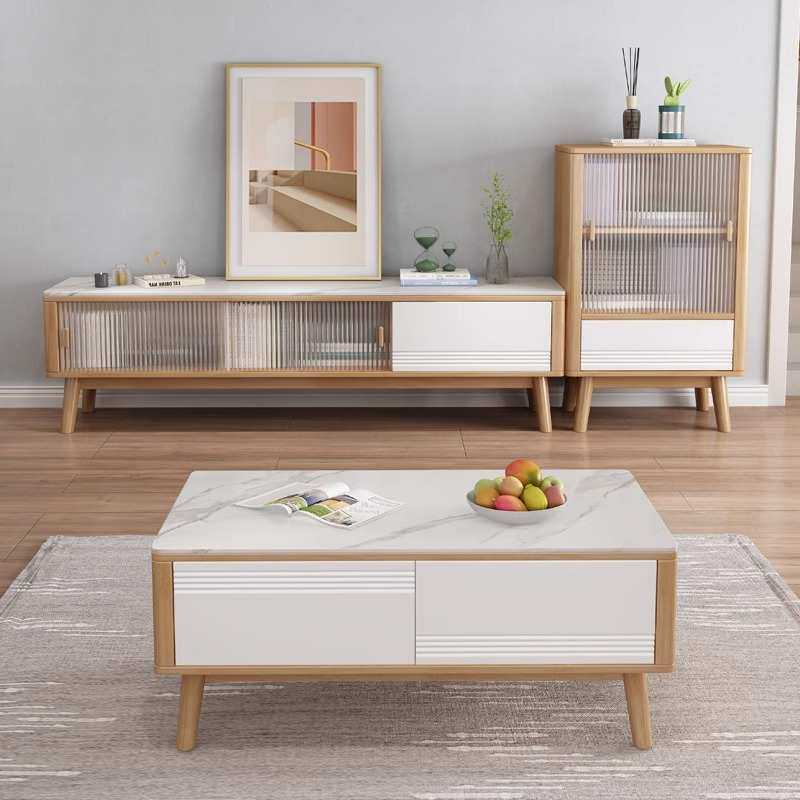 岩板电视柜落地茶几组合26cm家用收纳储物一体现代简约实木电视柜