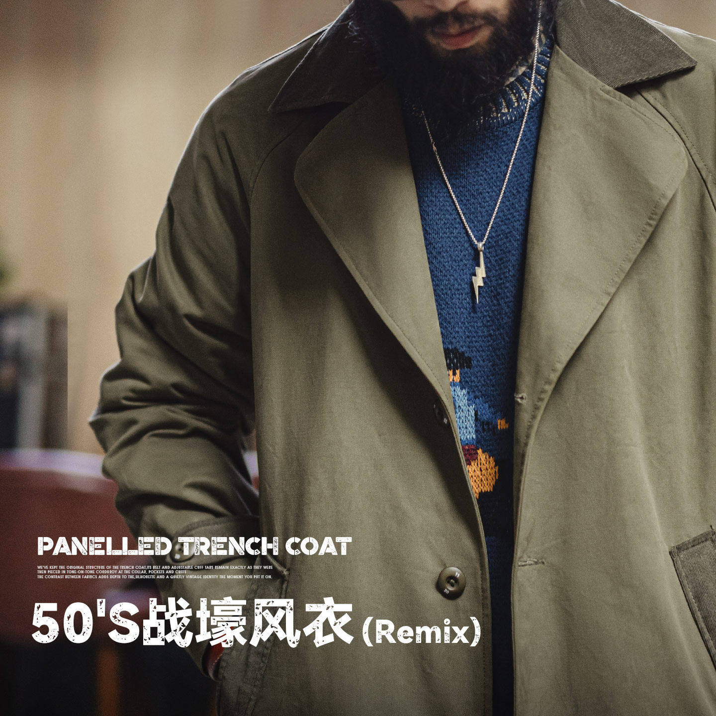 M51中长款风衣男绗缝内胆保暖军绿色美式复古棉服大衣连帽外套