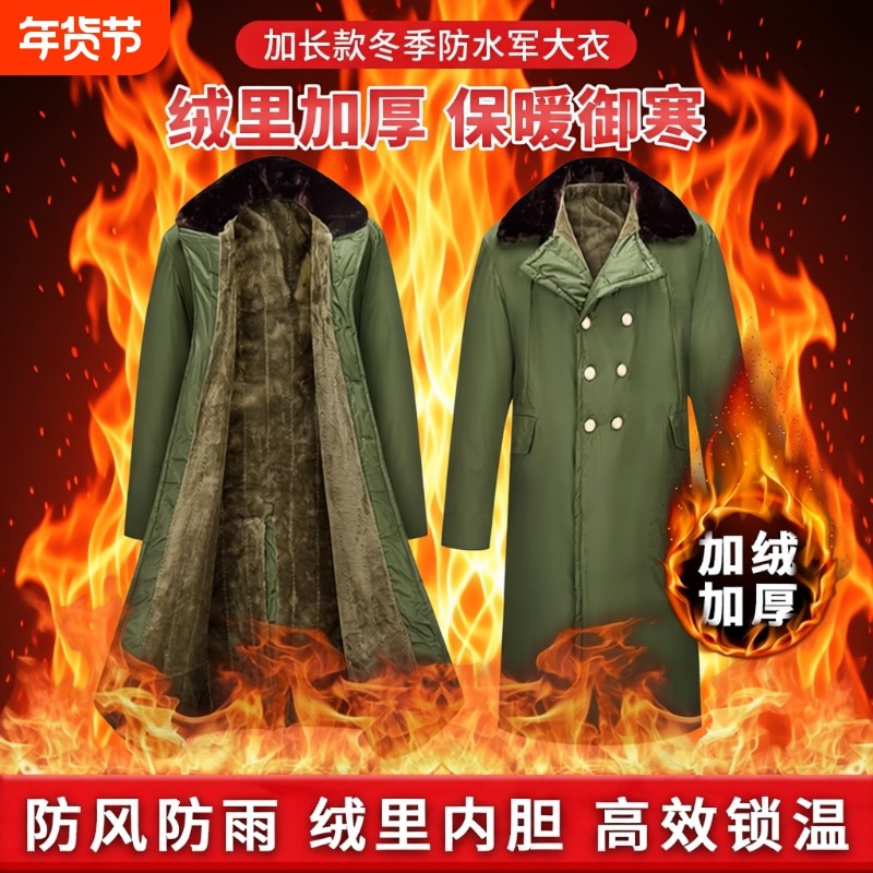 正品军大衣冬季加绒加厚保暖老式棉大衣男劳保防寒服纯棉军绿绿色