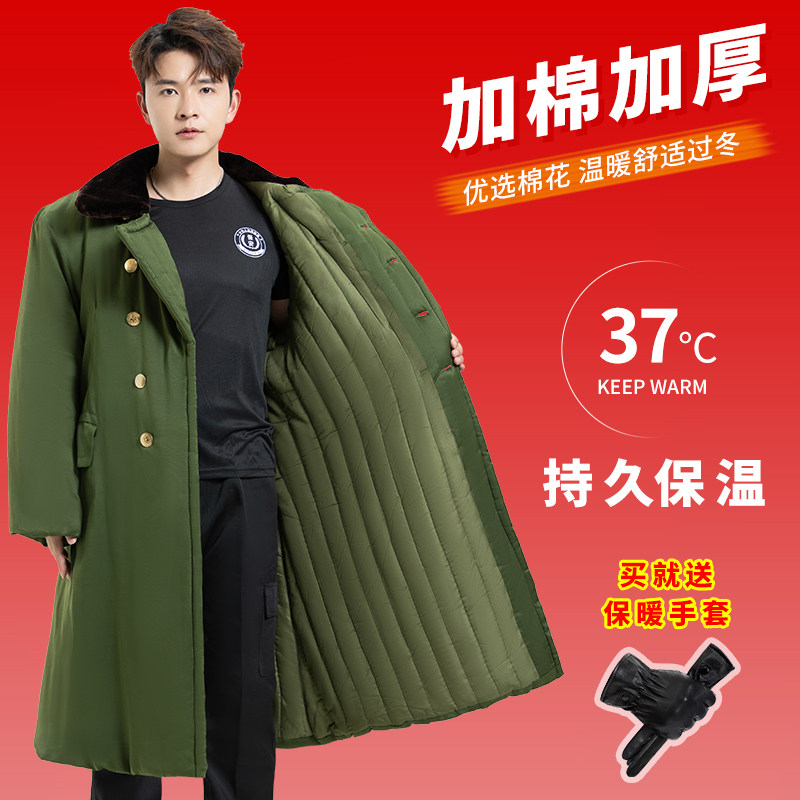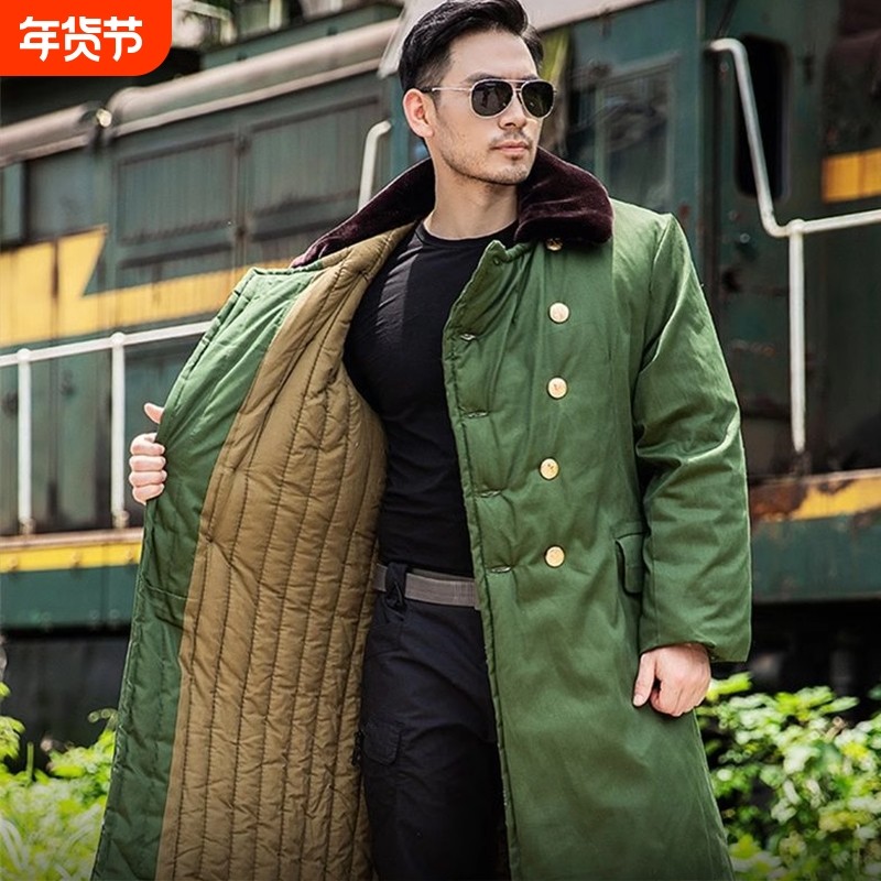 老款军棉大衣男加厚长款东北军绿色大棉袄冷库保安劳保工作服棉服