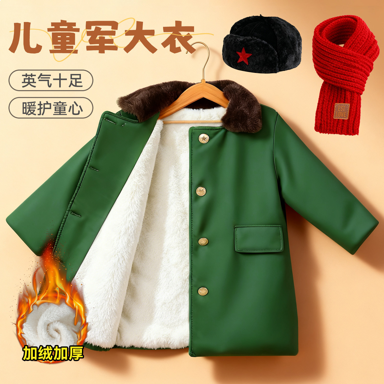 儿童军绿色大衣老款加厚男女童东北军绿棉衣保暖宝宝加厚棉袄外套