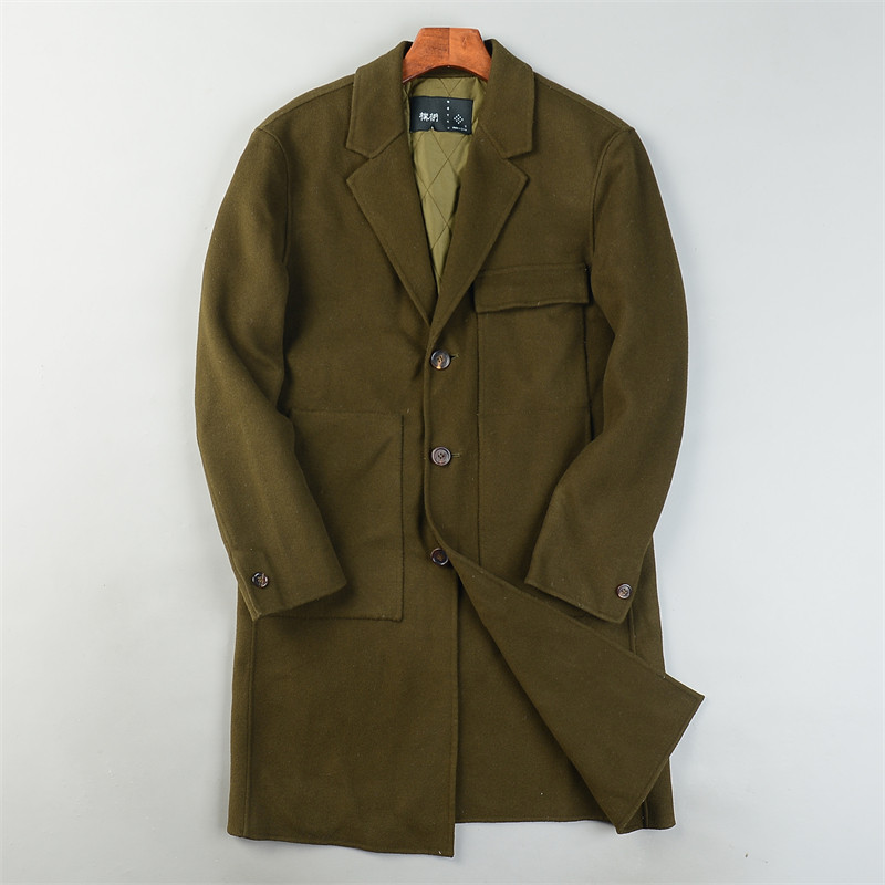 精品潮男经典复古军绿色毛呢大衣L85519西装领秋冬中长款羊毛外套
