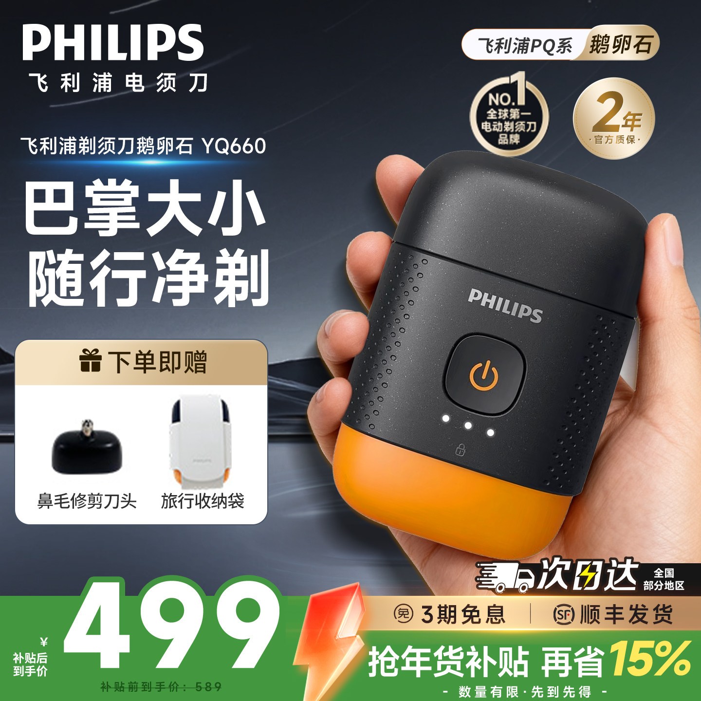 飞利浦鹅卵石便携电动剃须刀全身水洗YQ660可剃鼻毛正品官方旗舰