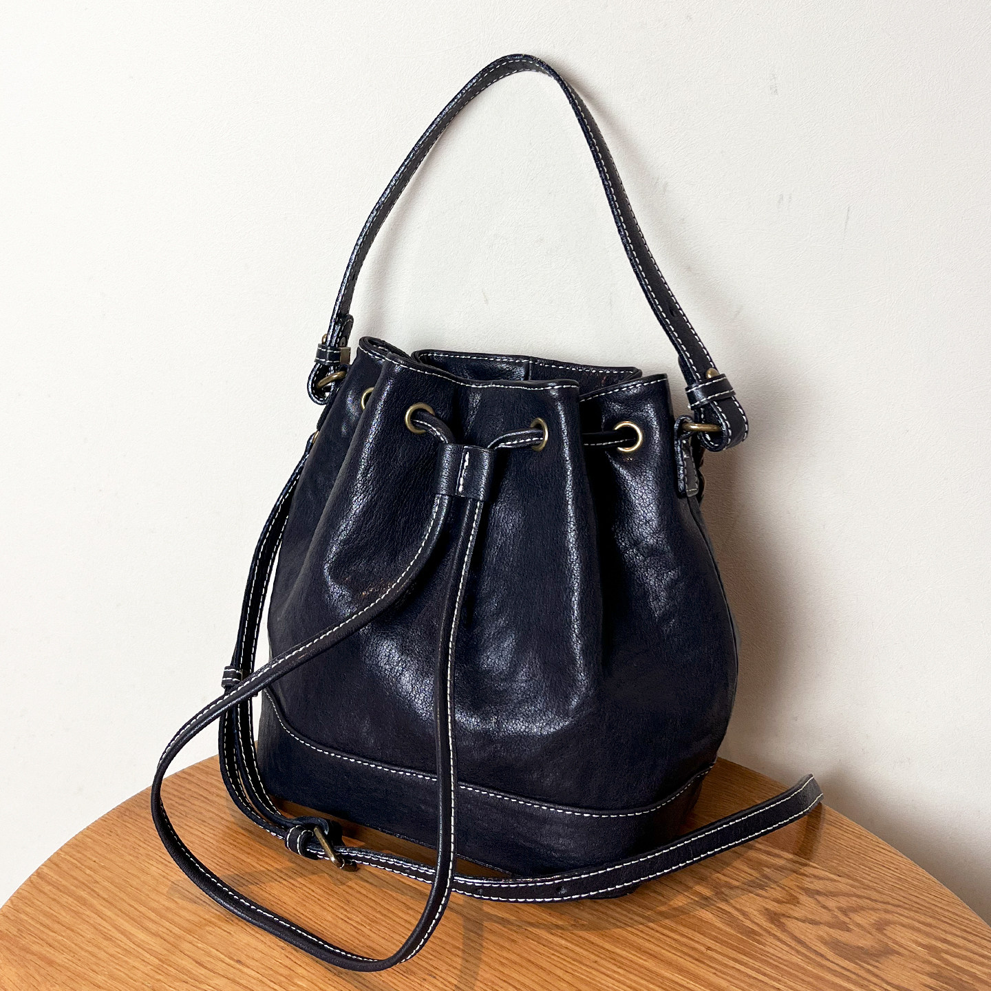 复古手工水桶包女真皮女包头层牛皮小包2025新款黑色手提斜挎包包