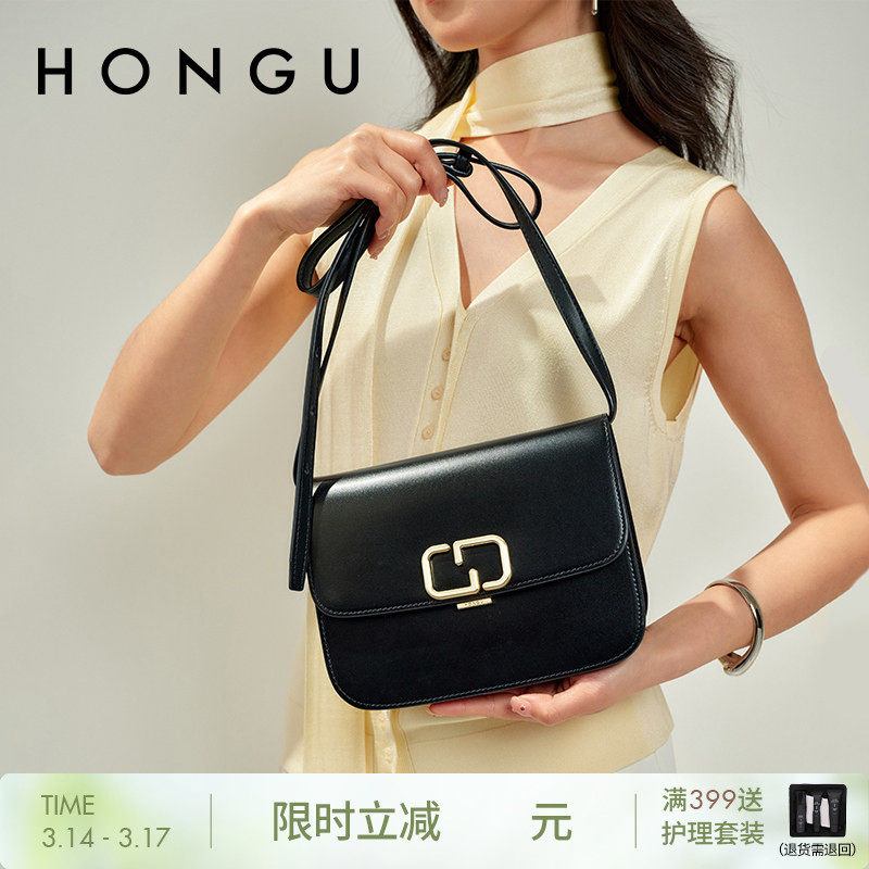 HONGU/红谷包包女新款复古百搭小方包通勤包女真皮女包牛皮斜挎包