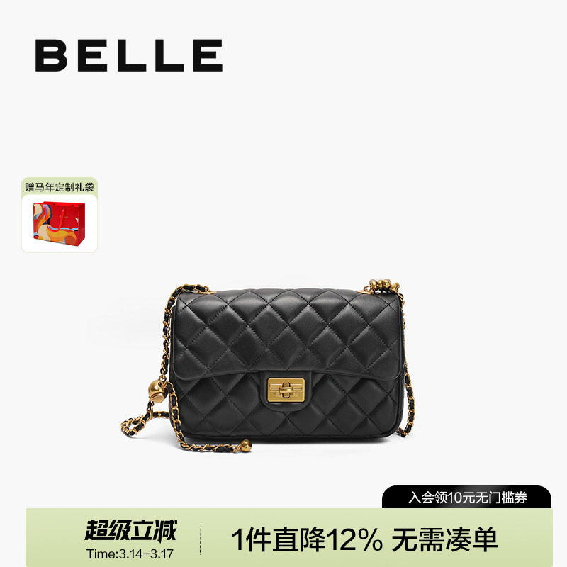 百丽女包新款碎银几两质感羊皮真皮链条小香风百搭斜挎包X6916BX4