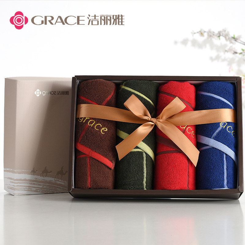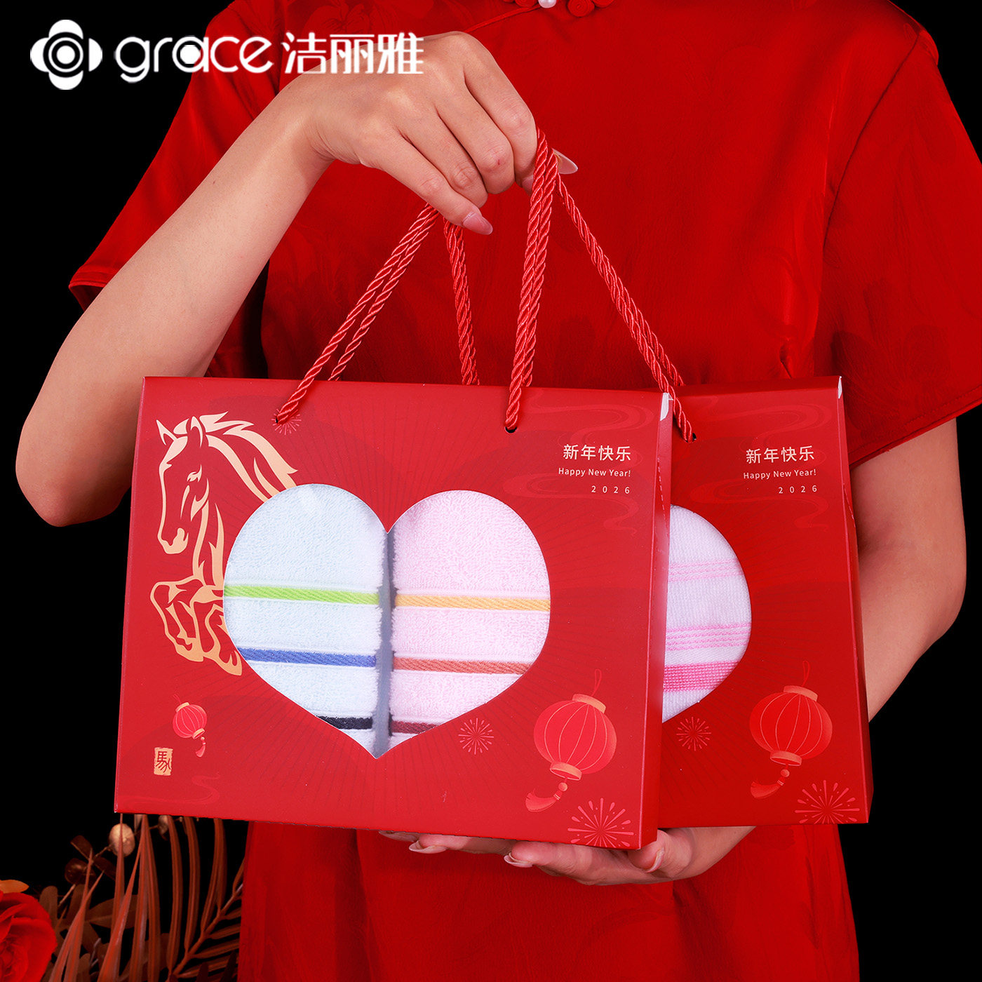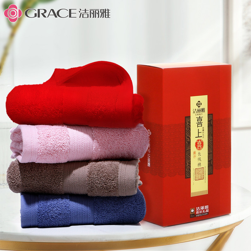 洁丽雅毛巾礼盒4条纯棉喜庆套装商务婚庆礼品生日伴手礼团购正品