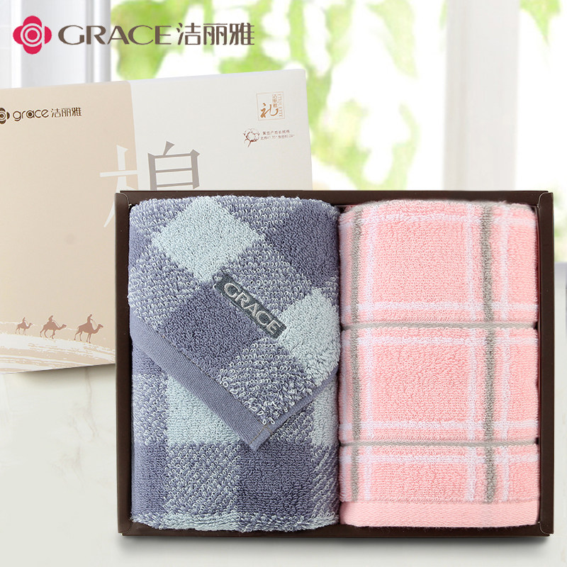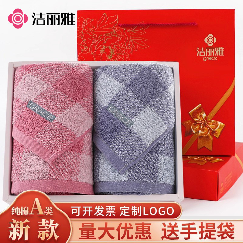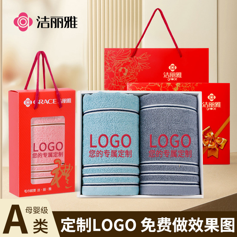 洁丽雅毛巾礼盒2条装纯棉洗脸家用大毛巾婚庆伴手礼福利定制logo