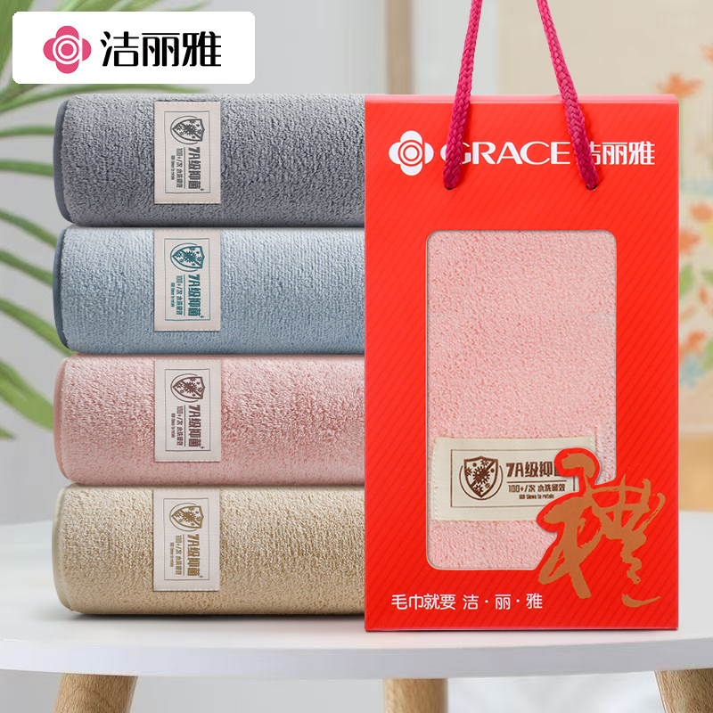 洁丽雅毛巾礼盒单条装纯棉洗脸家用全棉柔软男女面巾礼品定制团购