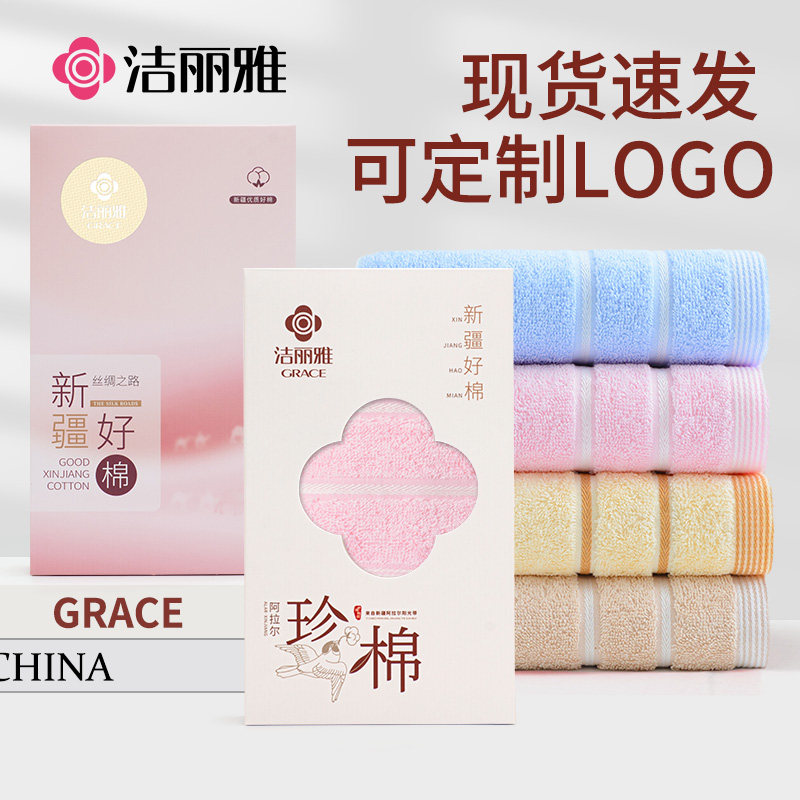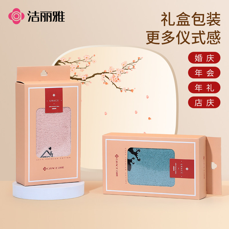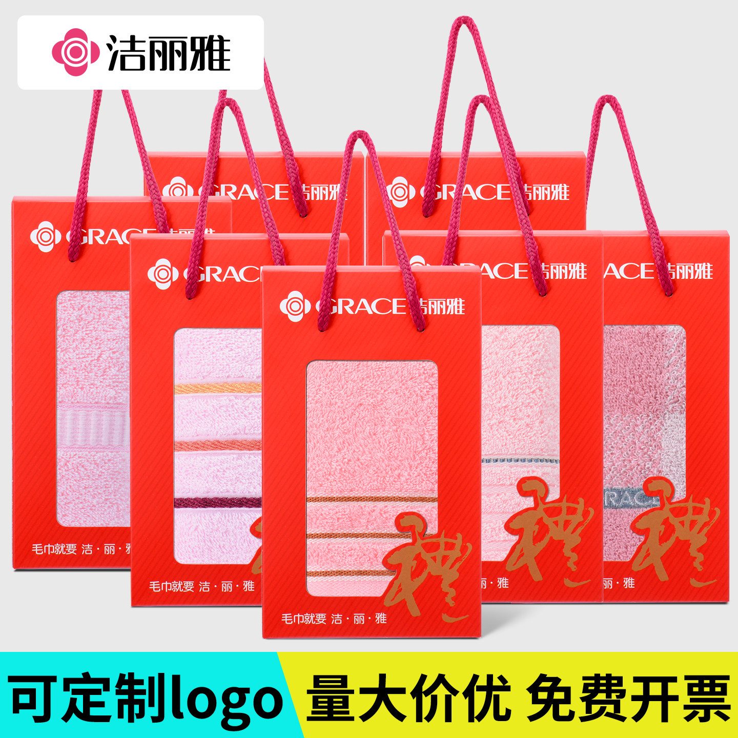 洁丽雅毛巾礼盒单条装纯棉吸水批发生日礼盒结婚伴手礼定制logo