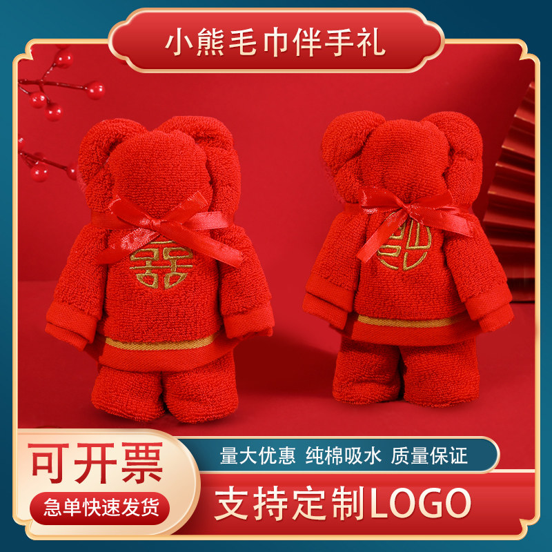 洁丽雅毛巾礼盒两条小熊装伴手礼公司福利婚庆生日小礼品定制logo