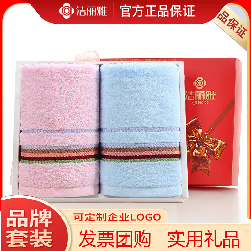 洁丽雅毛巾礼盒两条装纯棉伴手礼结婚陪嫁生日回礼品定制logo