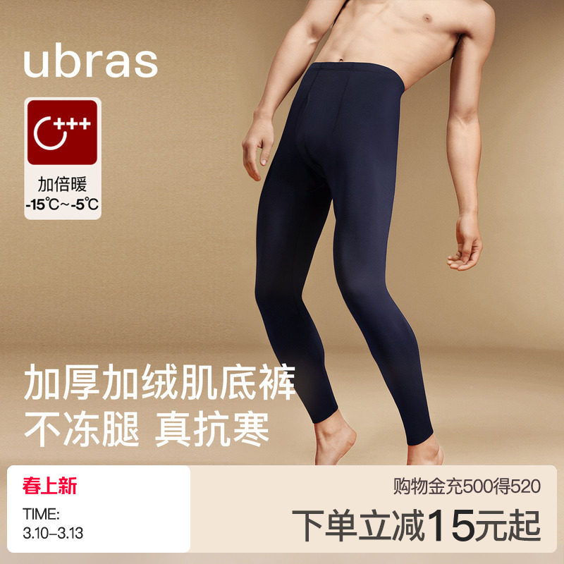 ubras保暖裤男士含羊毛秋裤男线裤羽绒化加绒加厚打底裤男青少年