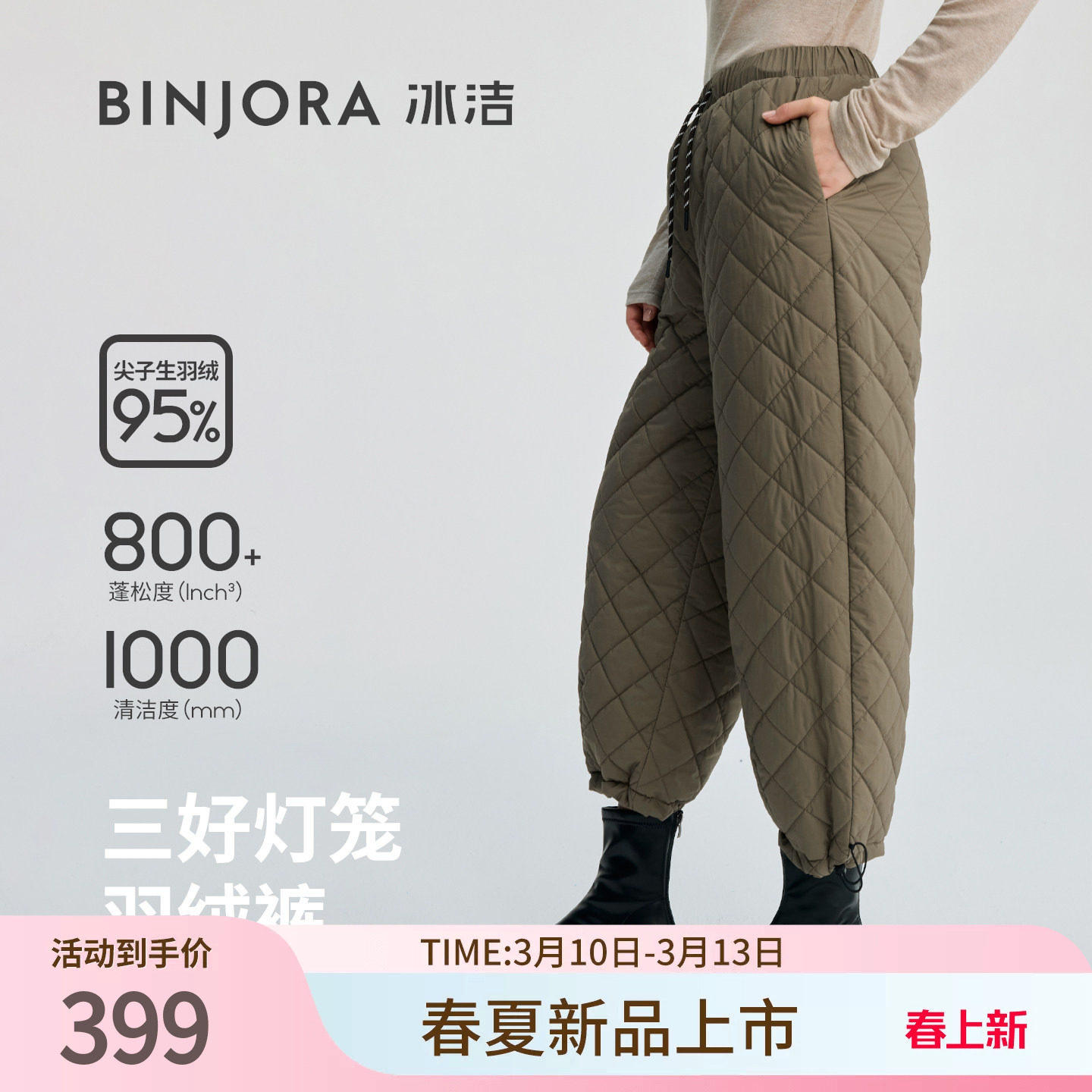 冰洁BINJORA冰洁95绒灯笼裤羽绒裤九分裤轻盈防风防泼水B