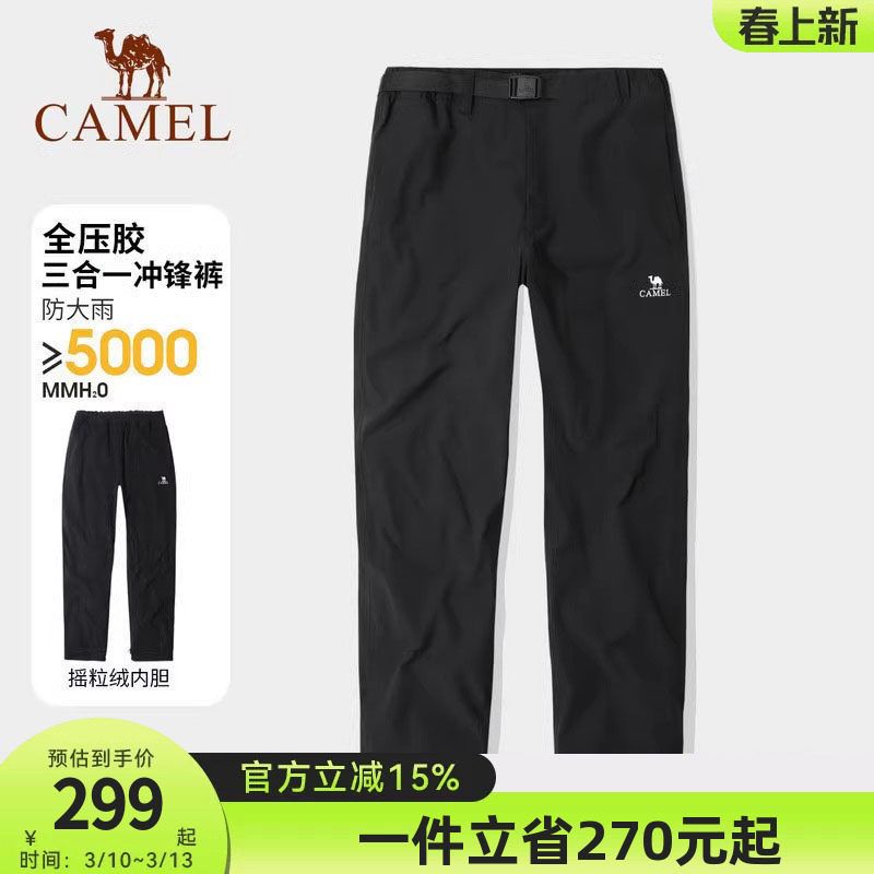 户外三合一摇粒绒冲锋裤羽绒登山裤直筒工装裤防风防水男女休闲裤