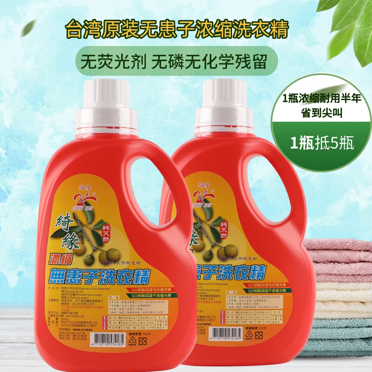 台湾绮缘天然无患子洗衣液抗菌除螨去污强手洗内衣裤羽绒服清洁剂