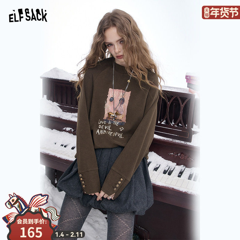 妖精的口袋原创印花卫衣半身裙两件套女2025冬季新款韩系一整套装