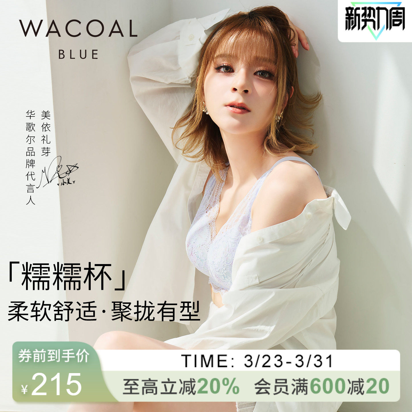 华歌尔Wacoal糯糯杯轻薄透气舒适性感聚拢无钢圈软支撑文胸内衣
