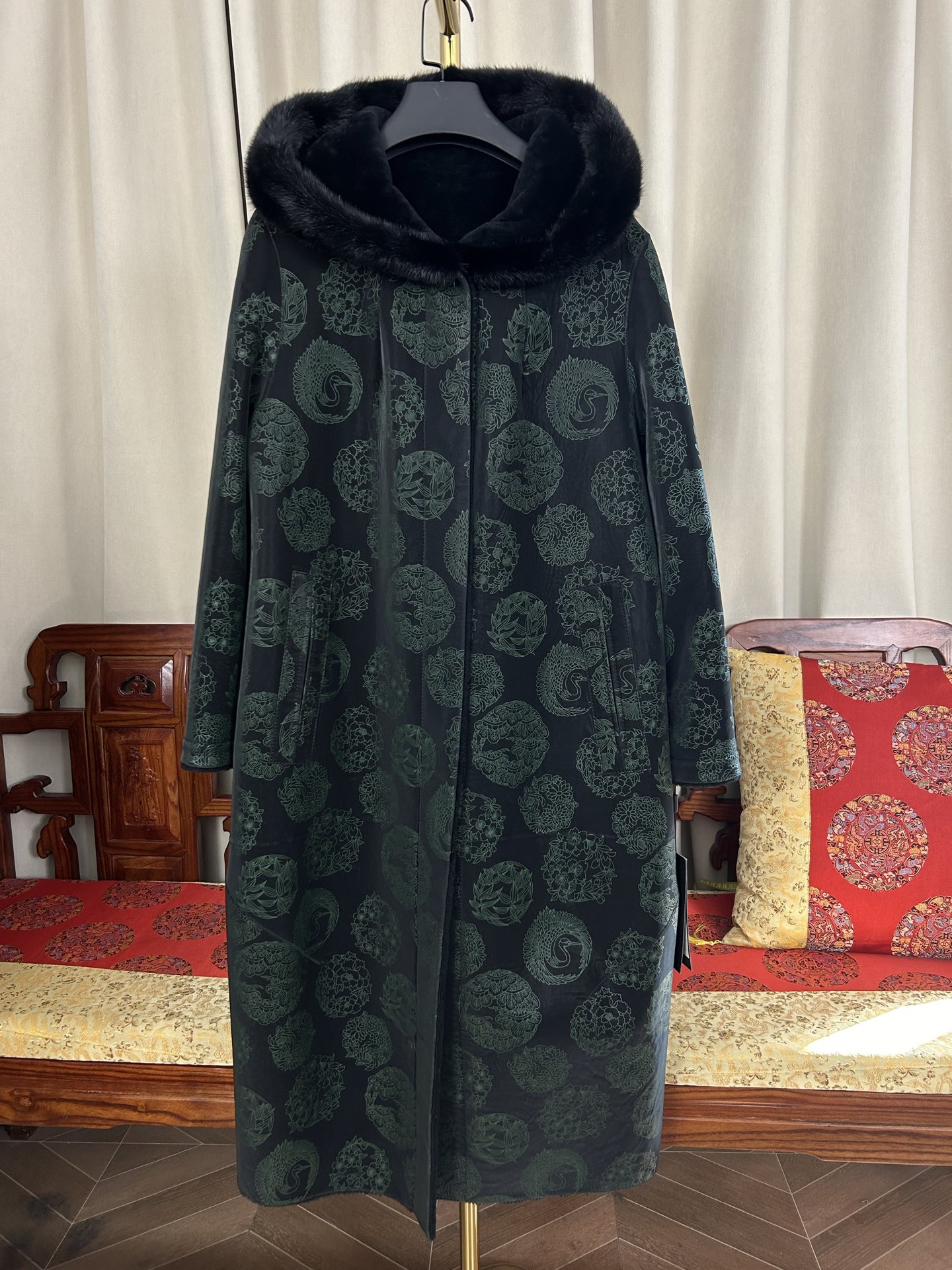 水貂皮大衣女士2024新款冬季方领时尚长款海宁整貂毛皮草裘皮外套