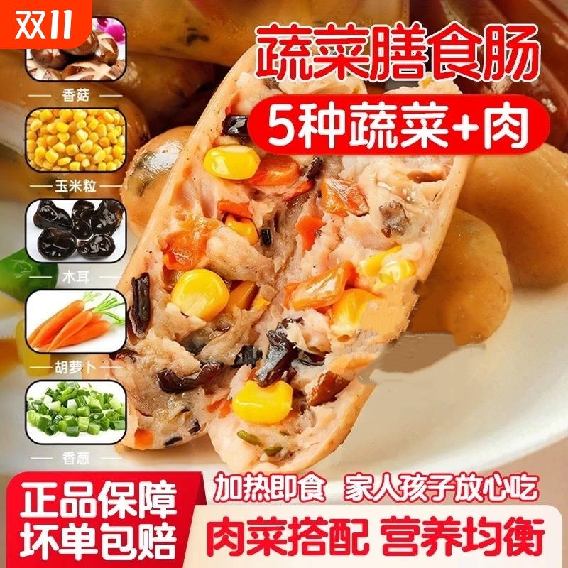 鲁不二 蔬菜膳食肠台湾火山石烤肠肉肠地道原味纤维冷冻香肠 400g