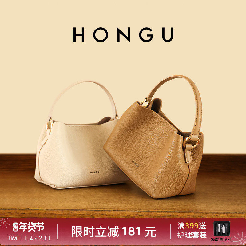 HONGU红谷手提包小众设计水桶包简约高级单肩包斜挎包百搭女包