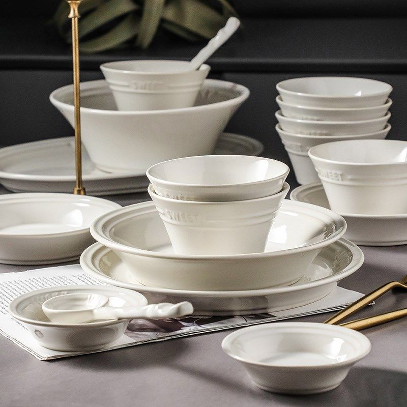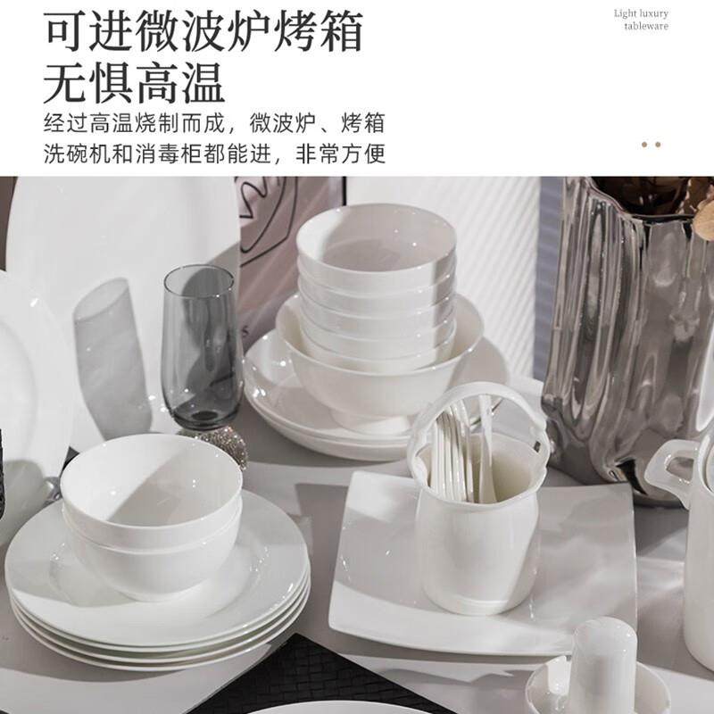 高档餐具套装骨瓷碗盘家用轻奢现代纯白碗碟套装碗筷组合陶瓷碗具