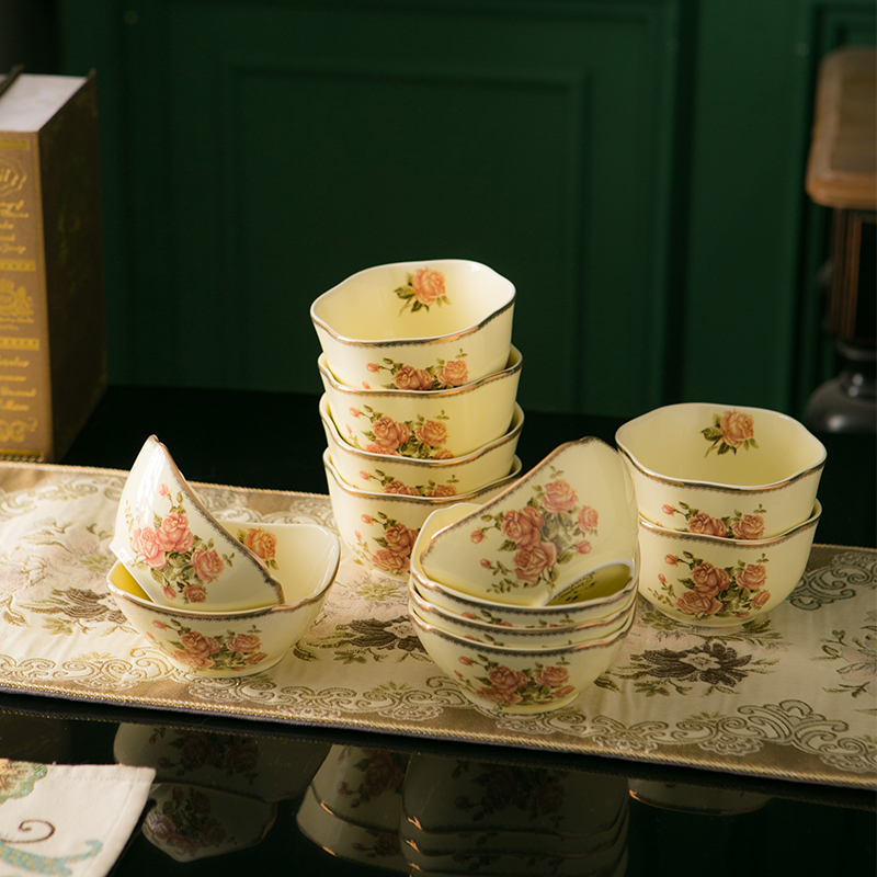 欧式家用碗陶瓷碗4.5寸米饭碗韩式陶瓷碗套装高档餐具套装骨瓷碗