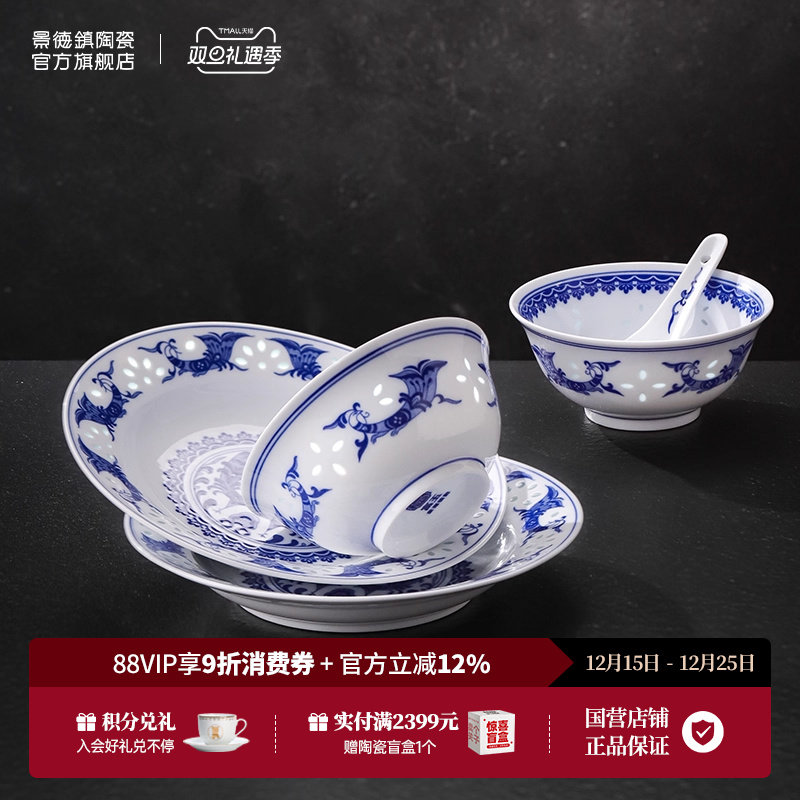 釉下彩碗家用2025碗碟套装家用景德镇青瓷高白瓷高档餐具套装乔迁