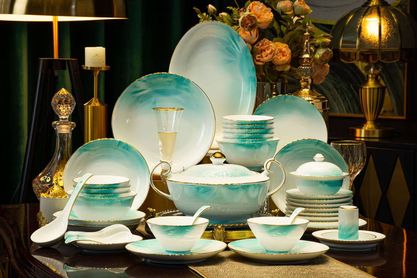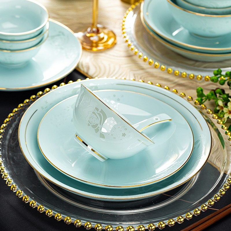 速发高档餐具套装碟描高岭土瓷金青釉白瓷碗青家用健康白瓷乔迁送