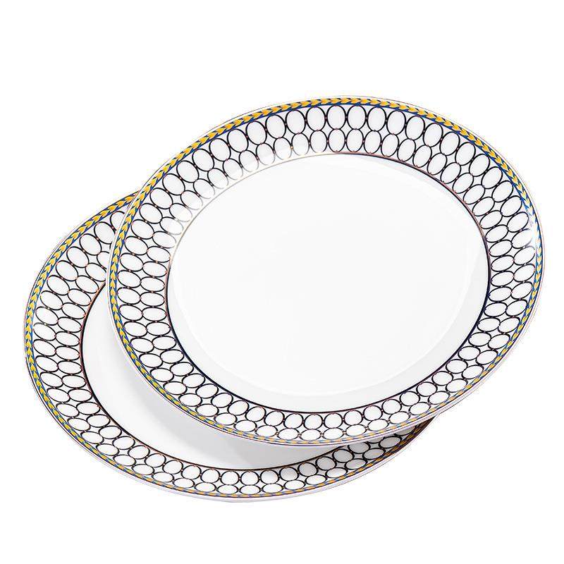 马赛克自由搭配组合高档骨瓷单碗盘碟景德镇欧式轻奢金边餐具套装