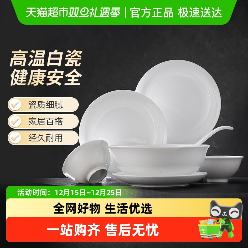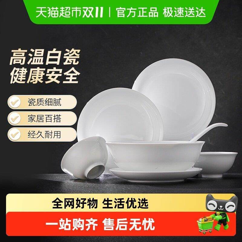 碗碟套装陶纯瓷家盘用餐套具整新中式简约白Z1204高档餐具套装碗