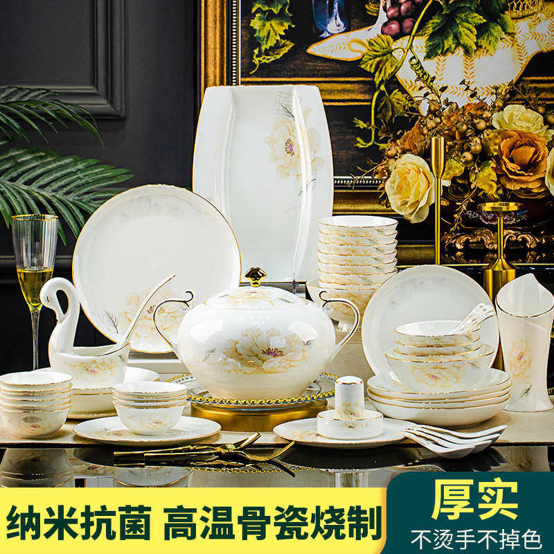 冰岩高档餐具套装家庭可及高档景德镇高档陶瓷餐具乔迁和移动骨瓷