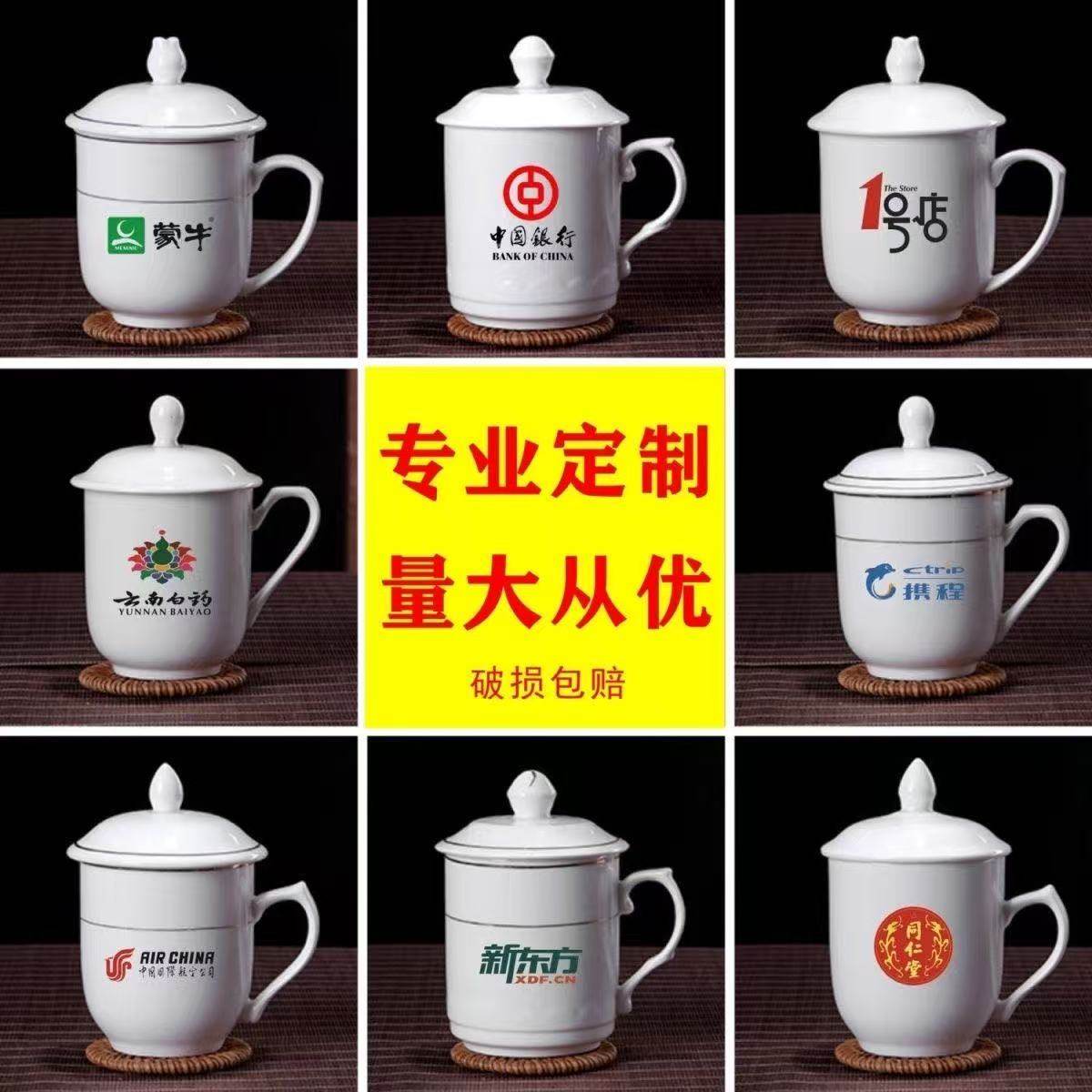 景德镇陶瓷茶杯带盖办公会议室杯子印字定制LOGO家用茶楼水杯刻字
