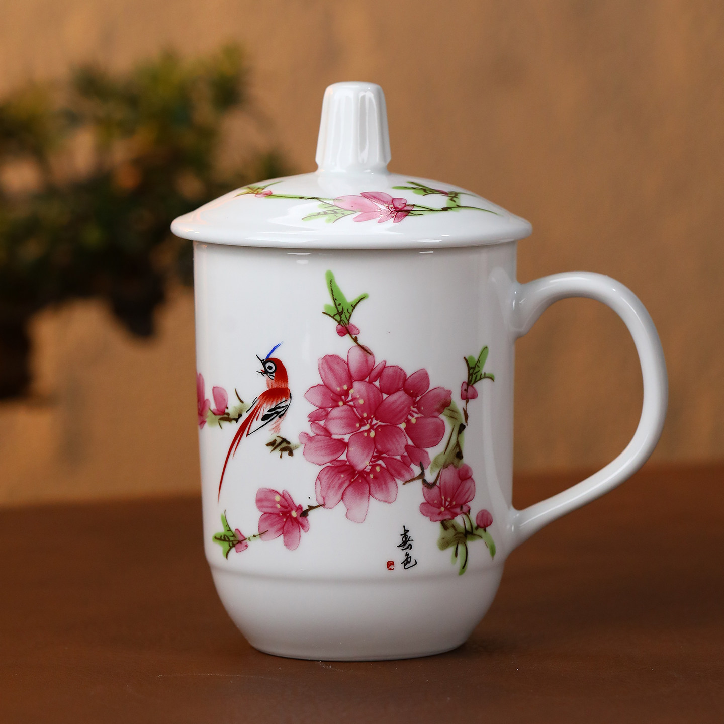 景德镇陶瓷茶杯泡茶杯家用办公室会议杯水杯LOGO定制马克杯带杯盖