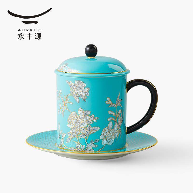 永丰源 夫人瓷水墨牡丹3件套会议杯 陶瓷茶杯水杯办公杯礼盒装