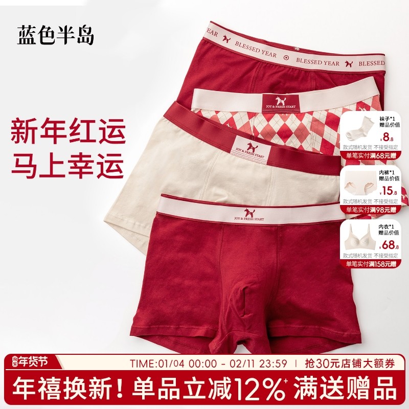 红色本命年内裤男士纯棉短裤衩2026属马年青少年爸爸衣服新年礼物